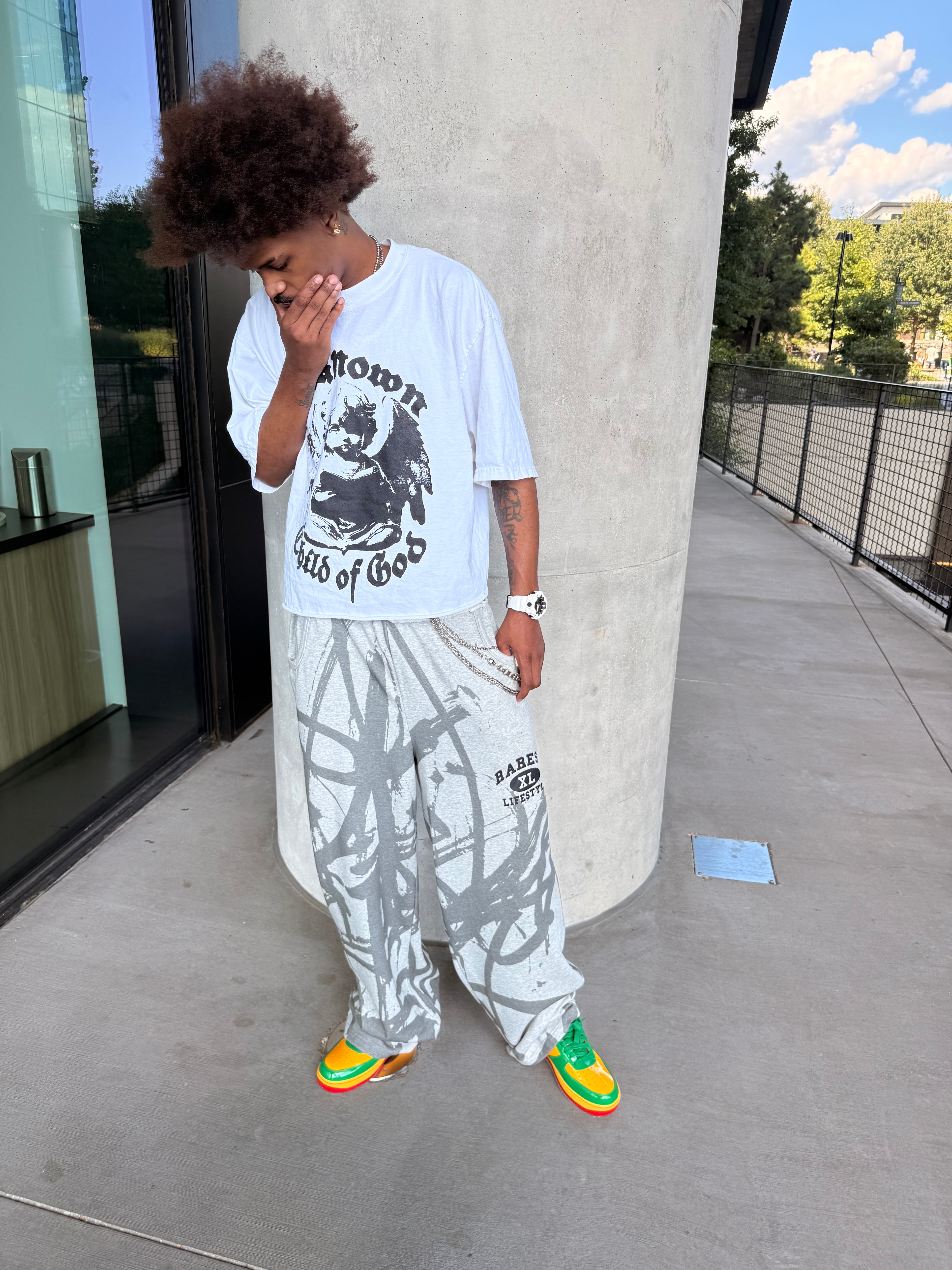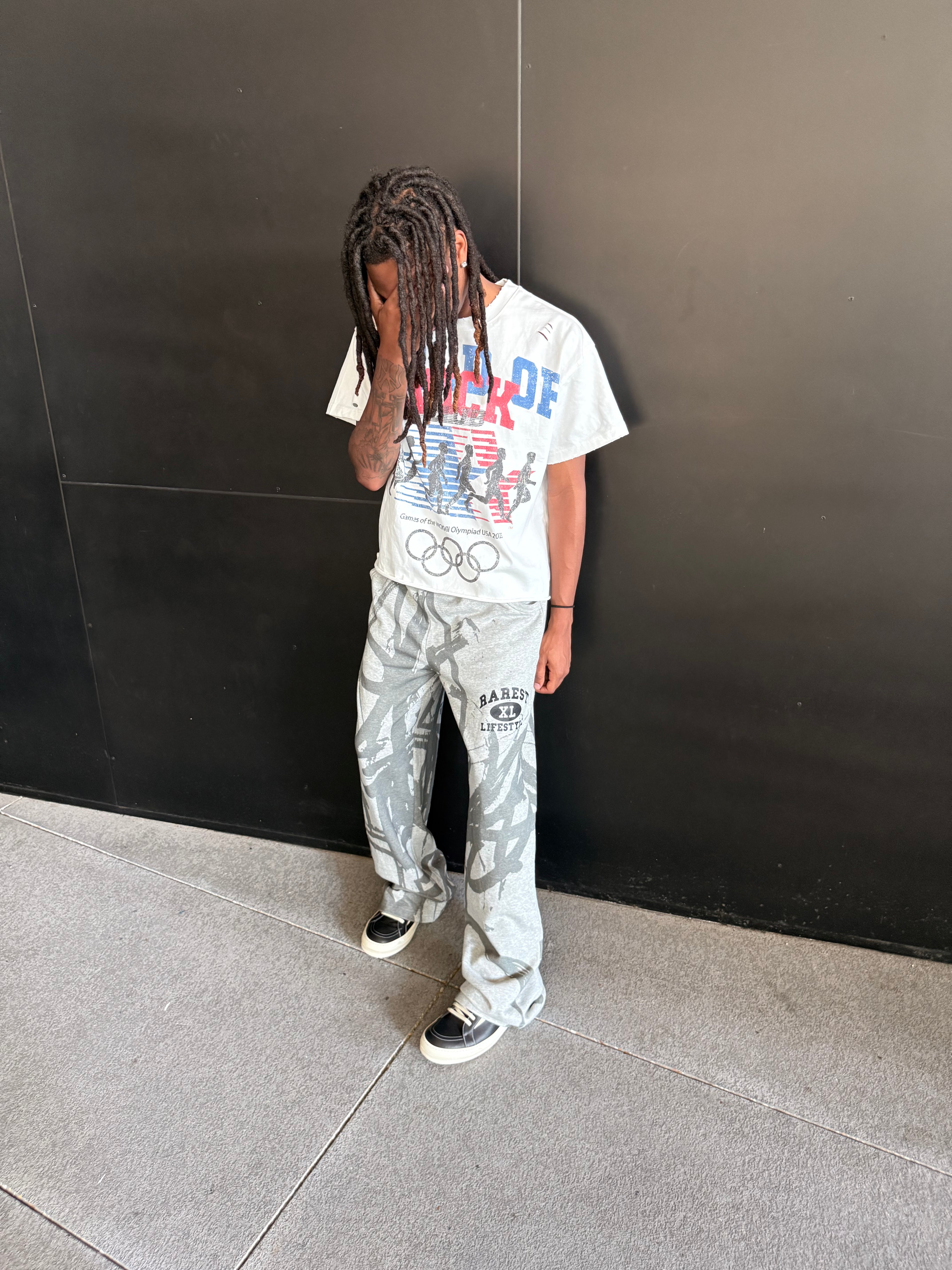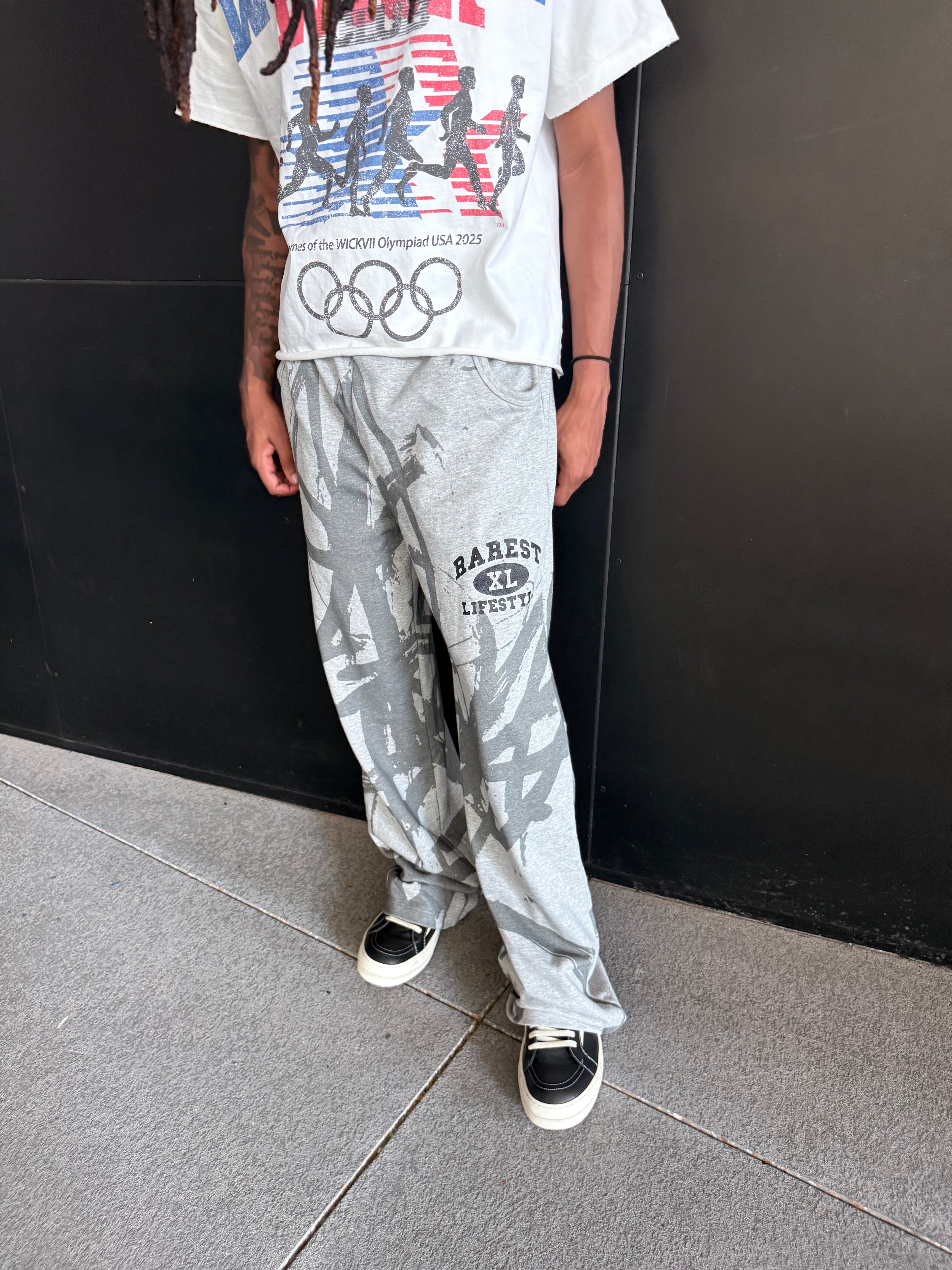 The Grey Graffiti Archive Sweats merge luxury weight with streetwear attitude. At 28.5oz, these sweats are crafted to feel substantial and last. Whether you secure an in-hand pair or lock in a preorder, you’re stepping into the RAREST LIFESTYLE archive collection.